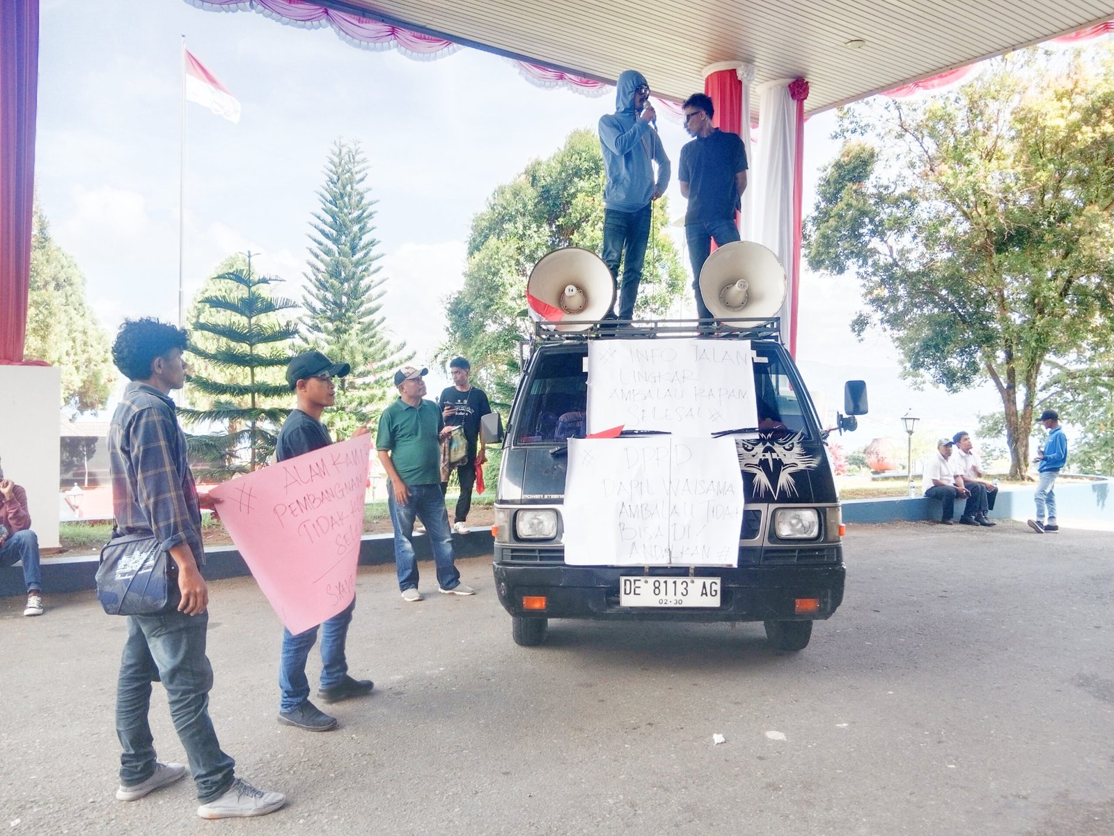 Aksi ini menuntut kepastian penyelesaian pembangunan jalan lingkar Ambalau, Kecamatan Ambalau, Kabupaten Buru Selatan.